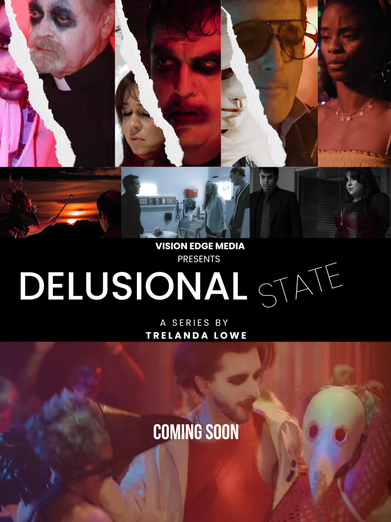 [Image Description]: A colleague of images from behind-the-scenes footage of Trelanda’s T.V. show trailer Delusional State.