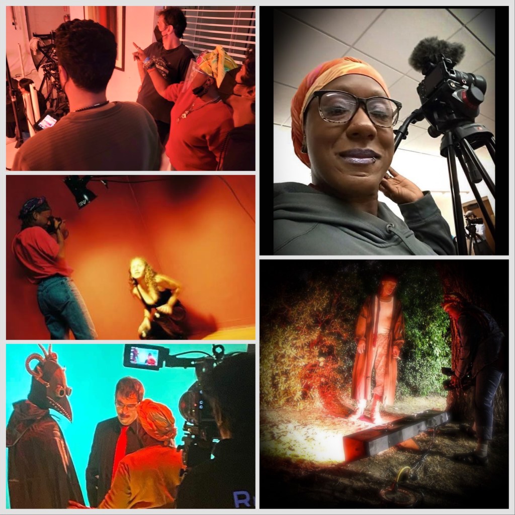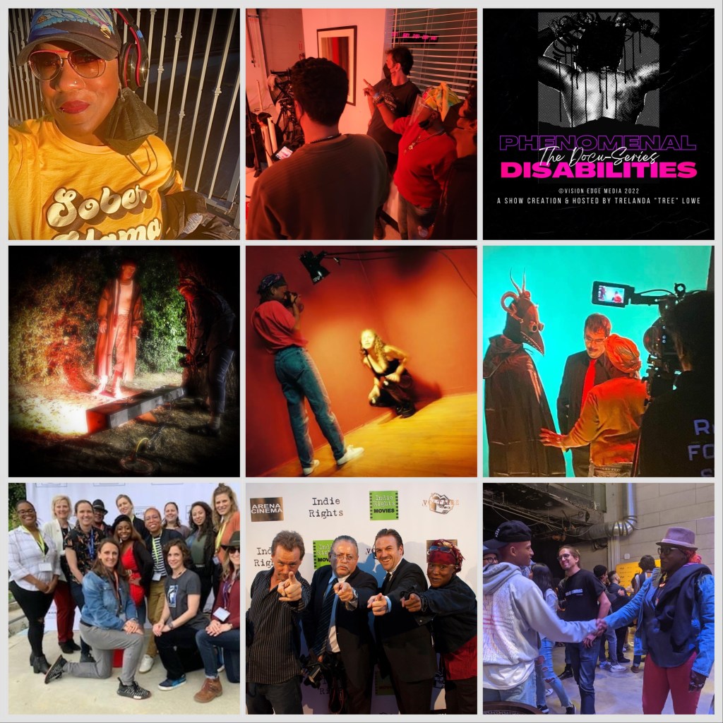 [Image Description]: A colleague of images from behind-the-scenes footage of Trelanda’s T.V. show trailer Delusional State.